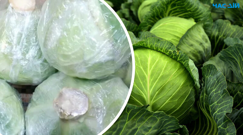 Досвідчені господині радять обгортати капустину трьома шарами харчової плівки. Обгорнута у плівку капуста зберігається у погребі до весни до нового урожаю.