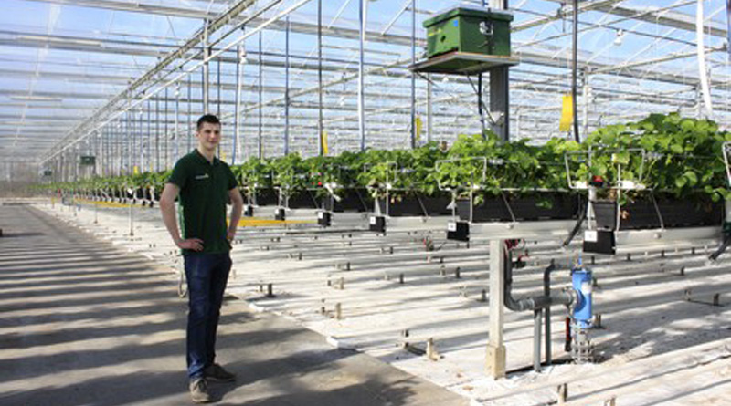 Когда Марио Корманс входит в клубничную оранжерею, он сразу же смотрит на цветы, чтобы увидеть, как идет опыления.